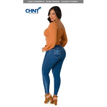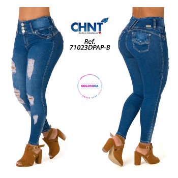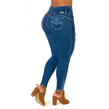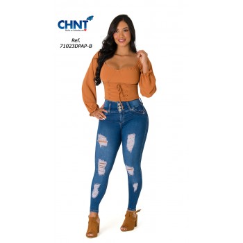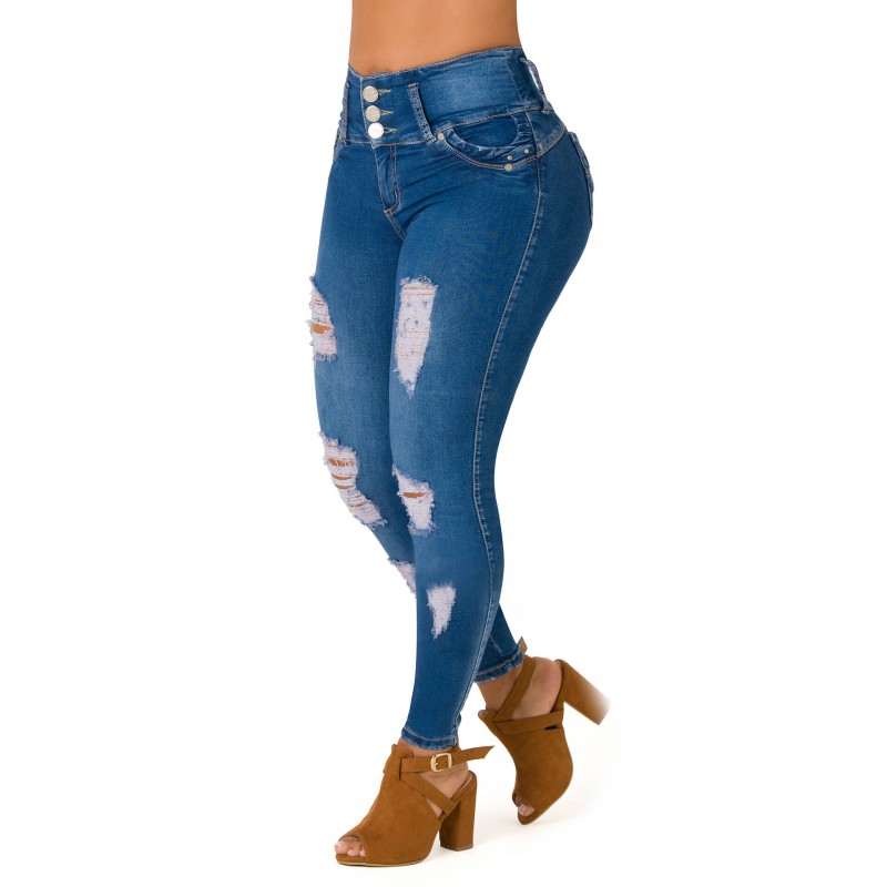 - 98% Algodon - 2% Elastano - Cintura Alta Con 3 Botones y Cierre - Con Bolsillo Posterior - Corre En Talla Normal - Cotilla Corazon - Moda - Pretina Ancha - Proceso Elaborado a Mano - Rotos - Terminacion de Bota Skinny - Tiro Alto