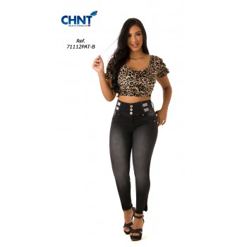 - 76% Algodon - 21% Poliester - 3% Elastano - Cintura Alta Con 3 Botones y Cierre - Con Bolsillo Posterior - Corre En Talla Normal - Cotilla Corazon - Moda - Pretina Ancha - Proceso Elaborado a Mano - Terminacion de Bota Tobillero - Tiro Alto