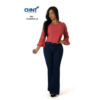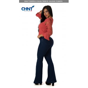 - 97% Algodon - 3% Elastano - Cintura Alta Con 1 Botón y Cierre - Con Bolsillo Posterior - Cotilla Corazon - Estilo Clasico - Pretina Delgada - Proceso Elaborado a Mano - Tiro Alto - Trerminacion de Bota Campana
