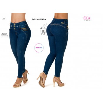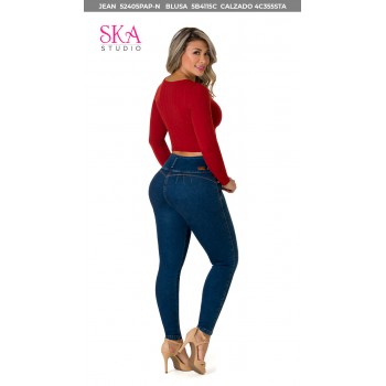 - 97% Algodon - 3% Elastano - Cintura Alta Con 3 Botones y Cierre - Corre En Talla Normal - Cotilla Corazon - Moda - Pretina Ancha - Proceso Elaborado a Mano - Sin Bolsillo Posterior - Terminacion de Bota Skinny - Tiro Alto